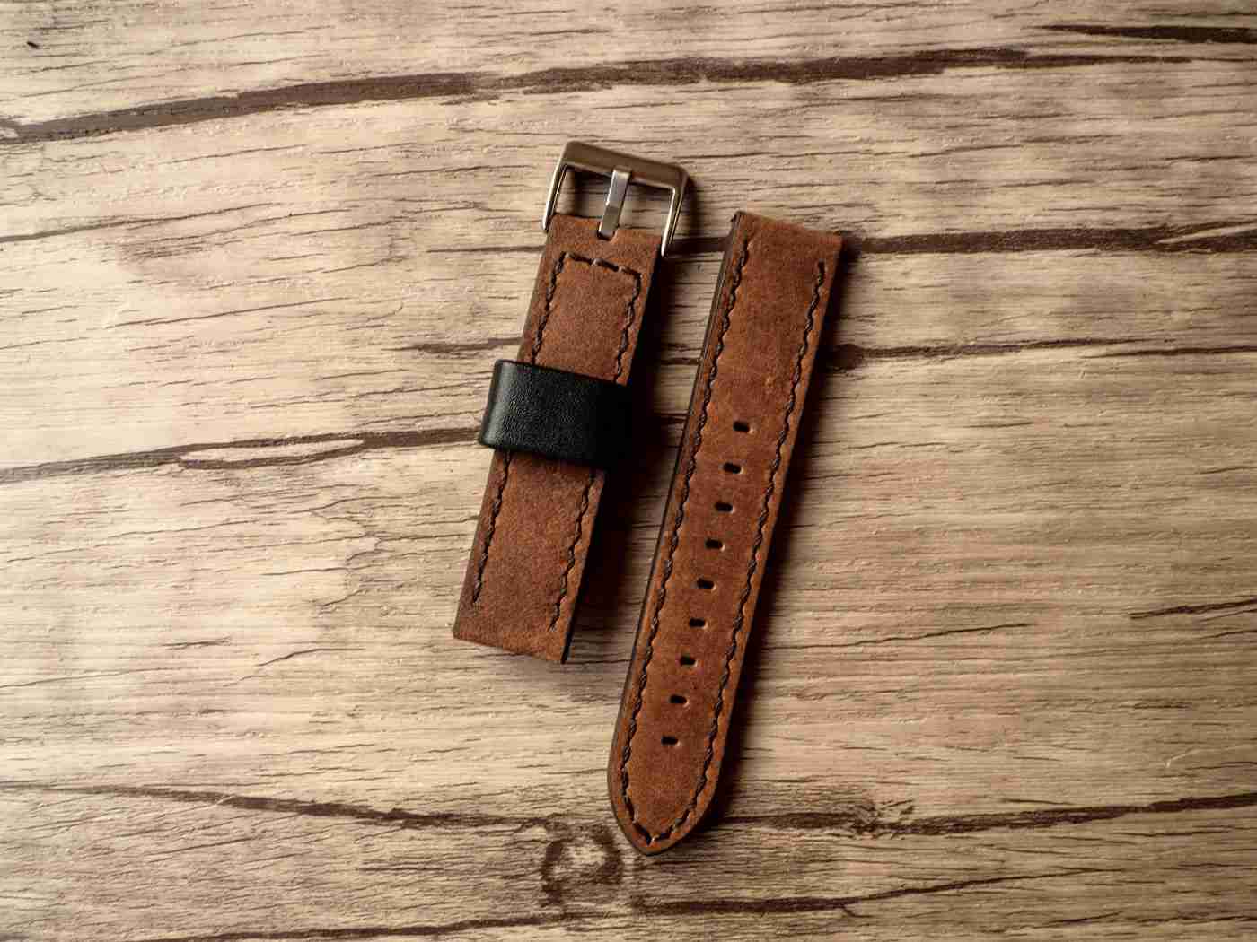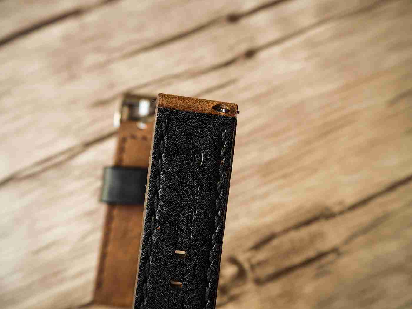Correa de piel para reloj modelo 399 fabricada en piel vacuno ligeramente engrasada.